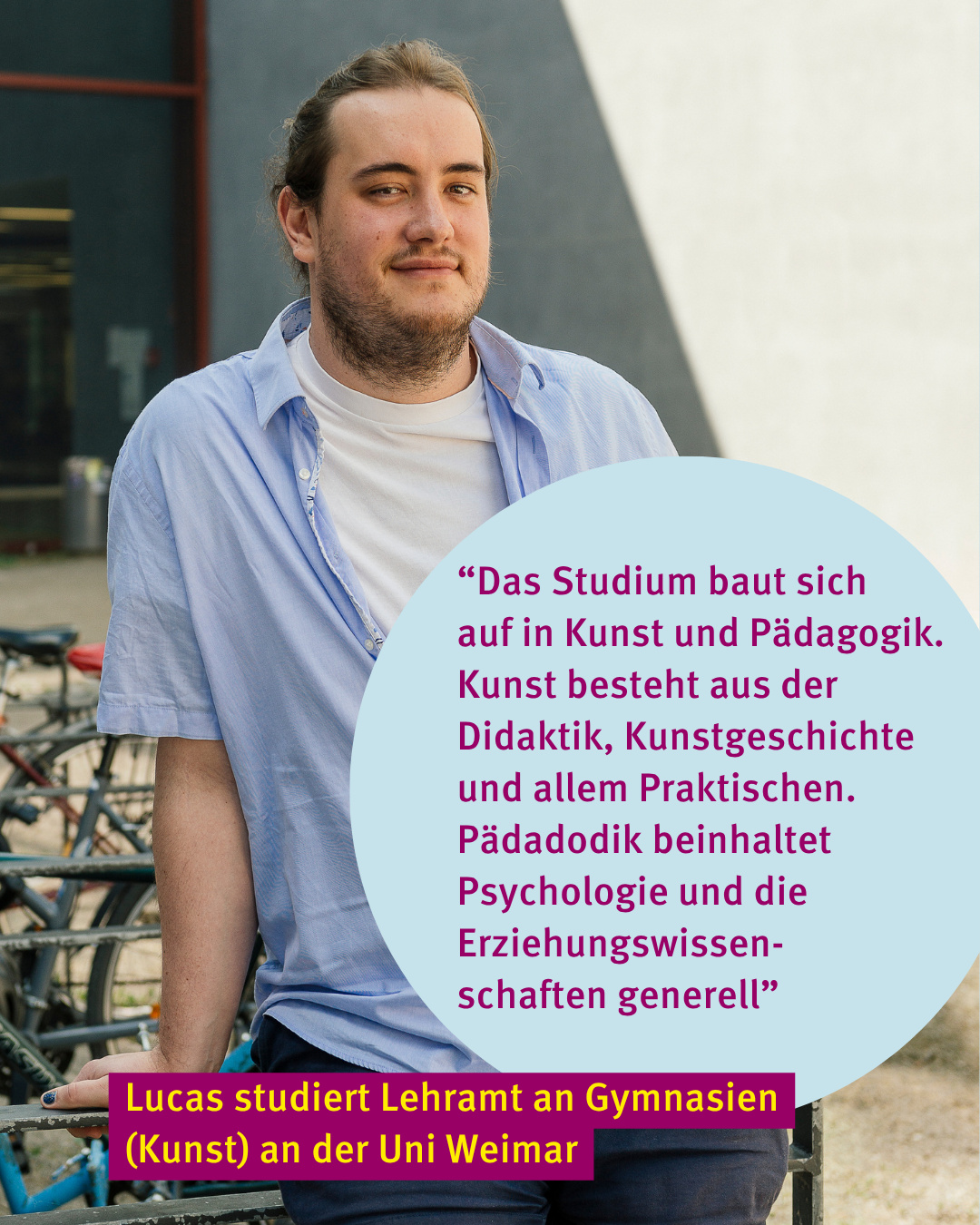 Lucas studiert Lehramt an Gymnasien Kunst an der Bauhaus-Universität Weimar