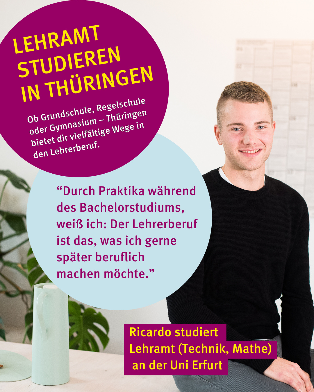 Weitere wichtige Infos und Tipps zum Lehramtsstudium in Thüringen findest du auf den Seiten von lehrerinthueringen.de